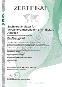 In der von uns angebotenen Ausbildung zum DEKRA zertifizierten Sachverständigen für Versicherungsschäden an und in Elektro-Anlagen erlangen Sie alle Kenntnisse für eine erfolgreiche Zusammenarbeit mit Versicherungsunternehmen.